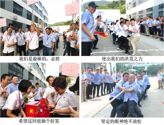 歡呼聲突然伴隨著哨聲響起,裁判宣布生產(chǎn)隊取得了第一輪的勝利。售后與人力行政聯(lián)隊力戰(zhàn)銷售與財務(wù)聯(lián)隊、供應(yīng)鏈聯(lián)隊,拿下兩連勝的佳績,沖入決賽,與勁敵生產(chǎn)隊正式PK。挑完邊,兩邊的選手都已在欲欲躍試,顯得迫不及待要與對手開始撕殺分個高下,繩子被雙方拽得緊緊地一動不動,哨響旗落,加油聲此起彼伏,隊員們咬緊牙,臉崩得通紅,不敢放松一下。“贏了”,一邊的人群突然歡呼起來,售后與人力行政奪得拔河比賽的最終勝利!