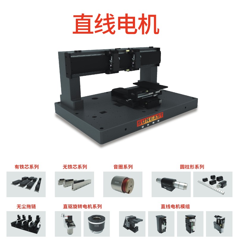 日東科技自主研發(fā)的直線(xiàn)電機(jī)產(chǎn)品系列,集高精度(100納米重復(fù)定位精度)、高響應(yīng)速度、高穩(wěn)定性及可靠性等優(yōu)點(diǎn),廣泛應(yīng)用于各行業(yè)精密場(chǎng)合,如視覺(jué)檢測(cè)、光學(xué)校準(zhǔn)對(duì)位、激光加工、工業(yè)機(jī)器人、精密機(jī)床等。產(chǎn)品采用光柵尺或磁柵等無(wú)接觸位置編碼器精準(zhǔn)定位,可實(shí)現(xiàn)單軸、多軸聯(lián)動(dòng),龍門(mén)同步等快速靈活的驅(qū)動(dòng)控制,維護(hù)方便,使用壽命長(zhǎng),同時(shí)緊湊的模塊化設(shè)計(jì)節(jié)省了安裝空間,易于擴(kuò)展。