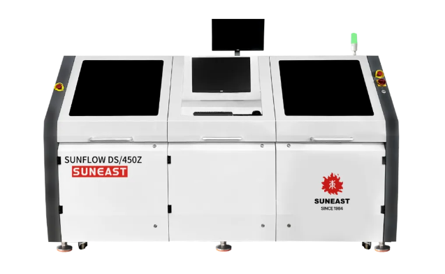 日東科技“雙電磁泵選擇性波峰焊”國內(nèi)首創(chuàng)電磁泵技術(shù),Z軸獨(dú)立升降,雙泵可根據(jù)程序設(shè)置獨(dú)立運(yùn)動,在有效提升產(chǎn)能的情況下?lián)碛懈蟮撵`活性。設(shè)備全程顯示焊接狀態(tài),雙焊接噴嘴間距自動調(diào)整。