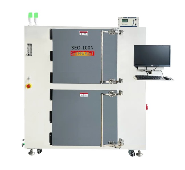 半導體充氮烤箱SEO-100N通用性強,具有高穩(wěn)定性和高性能,采用高容量水平空氣再循環(huán)系統(tǒng),采用專有的腔室結構和密封技術,具有出色的氣密性和溫度均勻性,滿足半導體產品高性能要求。此烤箱適用于固化半導體晶圓、IC封裝(銅基板,銀膠,硅膠,環(huán)氧樹脂)、玻璃基板等產品烘烤。
