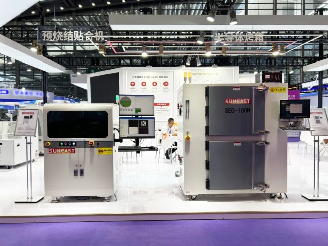 在本次展會(huì)上,日東科技展出了最新研發(fā)的半導(dǎo)體封裝設(shè)備,展示了在這一領(lǐng)域的持續(xù)創(chuàng)新與突破。自主研發(fā)的“IC貼合機(jī)”和“預(yù)燒結(jié)貼合機(jī)”可實(shí)現(xiàn)高精度芯片貼合,應(yīng)對(duì)大批量wafer上料的貼裝產(chǎn)品及功率模塊、電源模塊、新能源、智能電網(wǎng)等產(chǎn)業(yè)領(lǐng)域。此外,新推出的“半導(dǎo)體烤箱”和“快速固化烤箱”則在半導(dǎo)體封裝制程中提供了可靠的烘烤、固化與粘接解決方案。這些設(shè)備的展出不僅體現(xiàn)了日東科技強(qiáng)大的研發(fā)實(shí)力,也為客戶帶來了更多高效、穩(wěn)定的生產(chǎn)選擇。