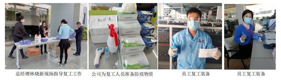 經過福永街道審批同意,2月17日公司迎來了第一批復工員工。疫情發(fā)生后,公司成立了以總經理林曉新為組長的防疫應急小組,積極安排各項防疫和復工工作以應對突如其來的疫情。假期內,公司密切關注全國疫情的發(fā)展,了解各地員工的健康情況、落實防疫物資的采購、做全員的行程排查、開展疫情知識的線上學習、安排返廠員工的隔離與生活、園區(qū)的消毒、就餐安全、客戶交期等方面進行了細致的安排,嚴格落實各項防控主體責任。員工是公司的第一生產力,員工的安全與健康是公司的第一要務!