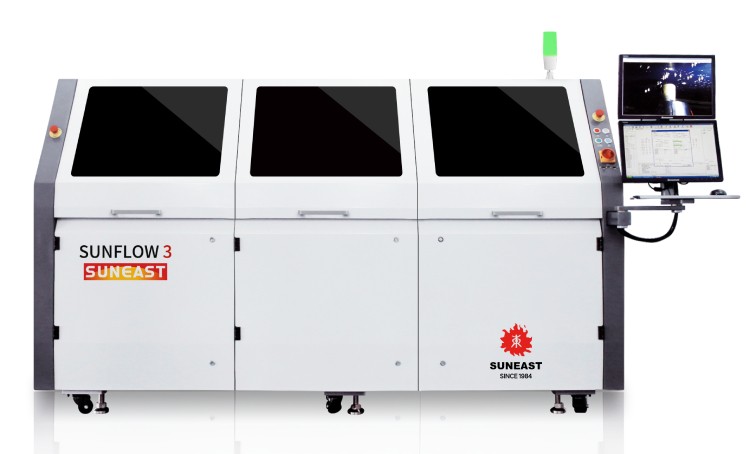 針對汽車板元件的焊接,具有空間小,焊點(diǎn)質(zhì)量高,免清洗性的特征,在助焊劑噴涂時選用免清洗助焊劑,通過控制助焊劑噴涂量,在保證噴涂效果良好的情況下,可以節(jié)省95%左右的助焊劑。預(yù)熱模塊采用分段式控制,自動校正溫度功能,既能滿足汽車板所需的高溫度,同時也可節(jié)約設(shè)備耗電量。電磁泵錫爐可以提供穩(wěn)定的高波峰,對焊點(diǎn)進(jìn)行焊接,保證焊點(diǎn)的高質(zhì)量