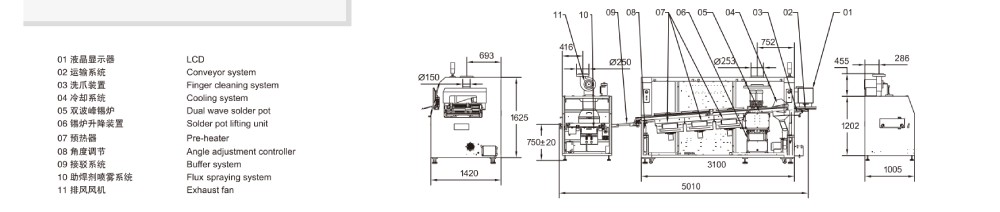 錫爐采用外熱式加熱,錫爐內膽采用鑄鐵制作,內表面防腐蝕處理,兩個低流速噴口、低氧化量設計;