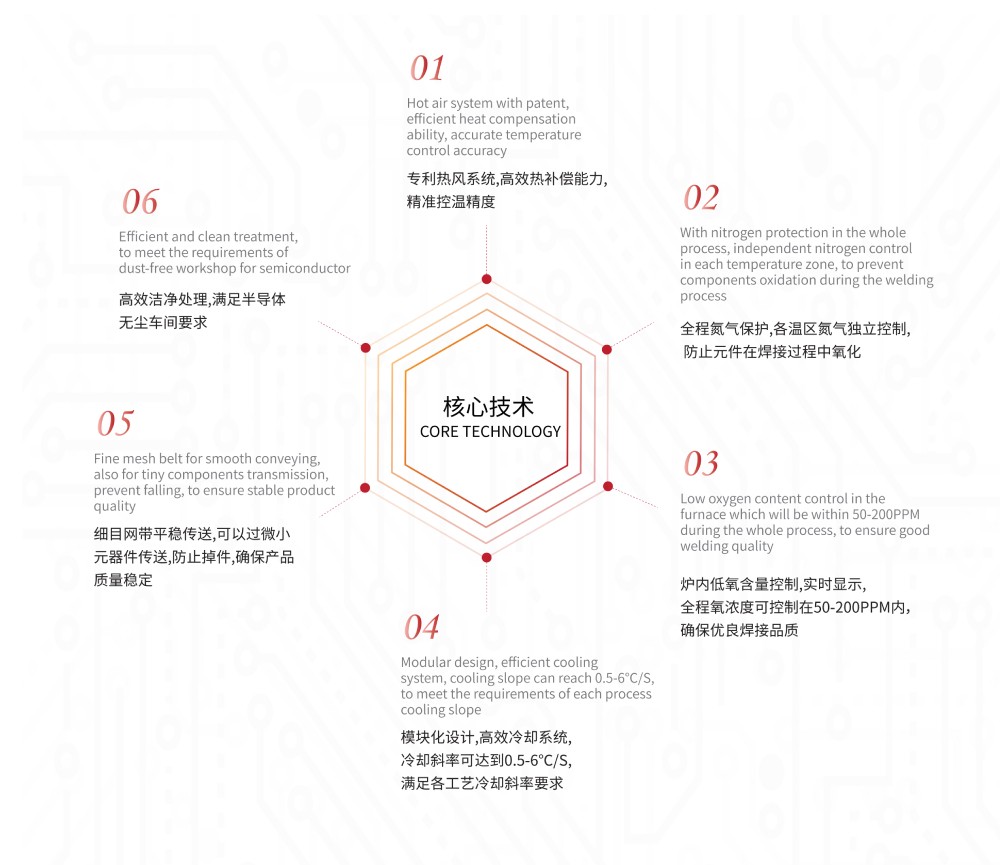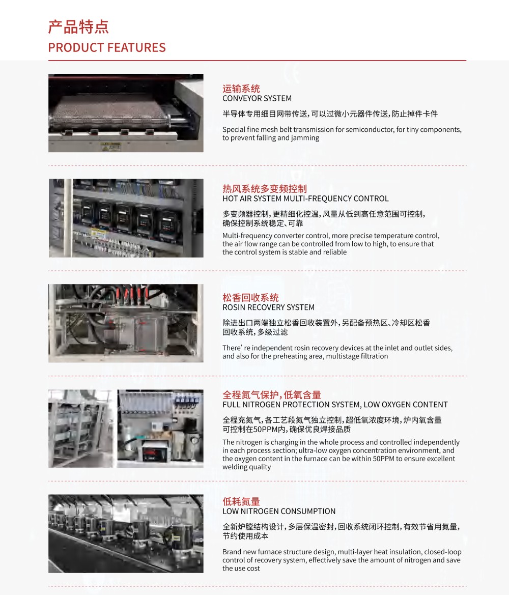3、 爐內低氧含量控制,實時顯示,全程氧濃度可控制在50-200PPM內,確保優良焊接品質;